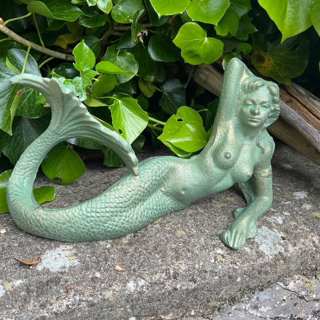 This lovely young Lady is cast iron with a beautiful verdigris finish and measures 32cm.