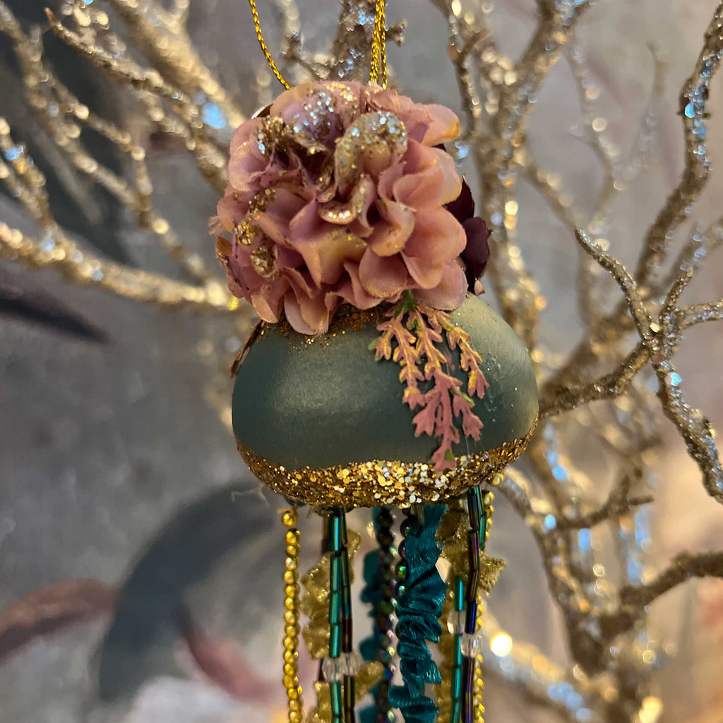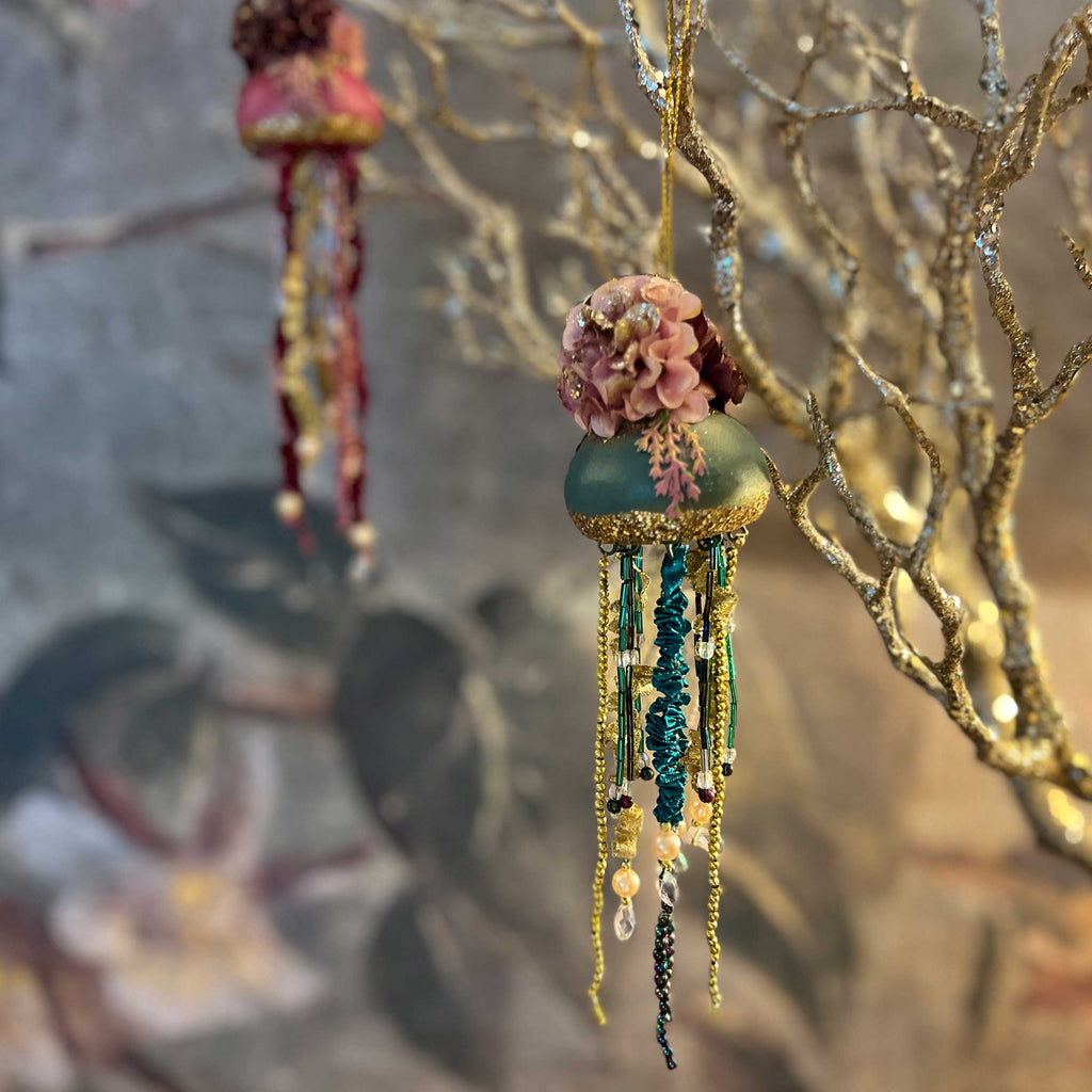 Extremely decadent Jellyfish, beautifully and lovingly hand painted, they are covered in silk petals and beads.