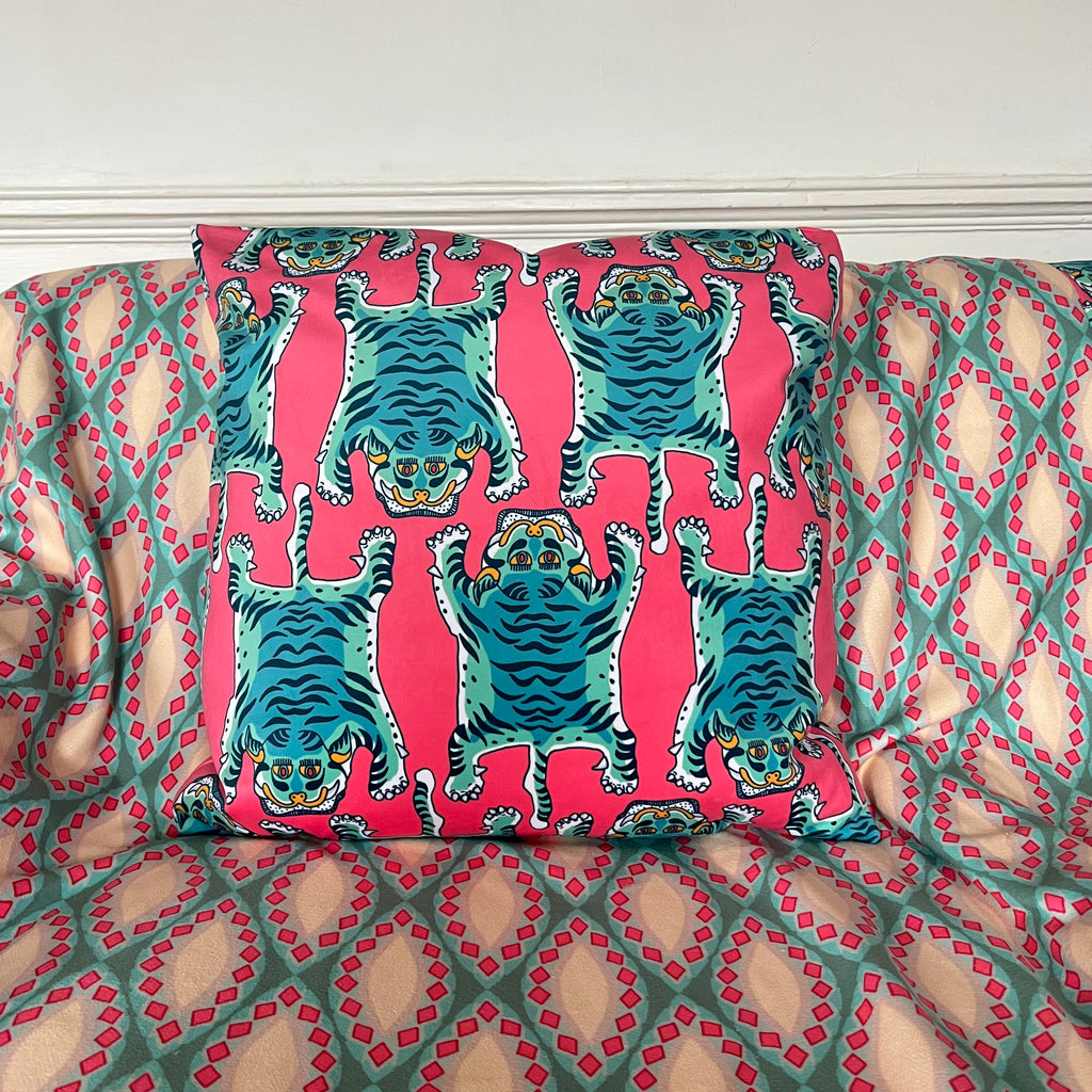 One side has the Tibetan Tiger Design, while the other side is a faux sherpa fleece