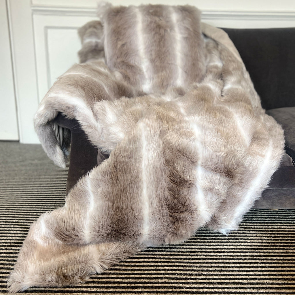 Wrap yourself in luxury with the Soft tones of this Reindeer Faux Fur Throw, a chic and cosy companion for the colder seasons. This elegant throw enhances any room with its lavish texture and stylish design. Perfect draped over a sofa or armchair for relaxing evenings, or as a glamorous accent at the foot of your bed. Made from premium faux fur, it features a soft tan imitation suede backing for added comfort. Measuring 140cm x 180cm, it is also available in 140cm x 240cm to suit your space perfectly.