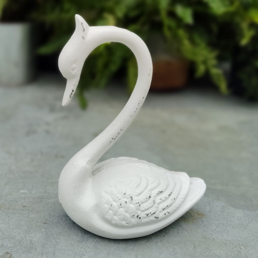 This charming cast iron Swan is an absolute showstopper! Standing at a delightful 15cm tall and 20cm wide, it's the perfect size to command attention on any shelf or garden. Weighing in at a substantial 1.18kg, this decorative beauty brings both presence and personality to your space.