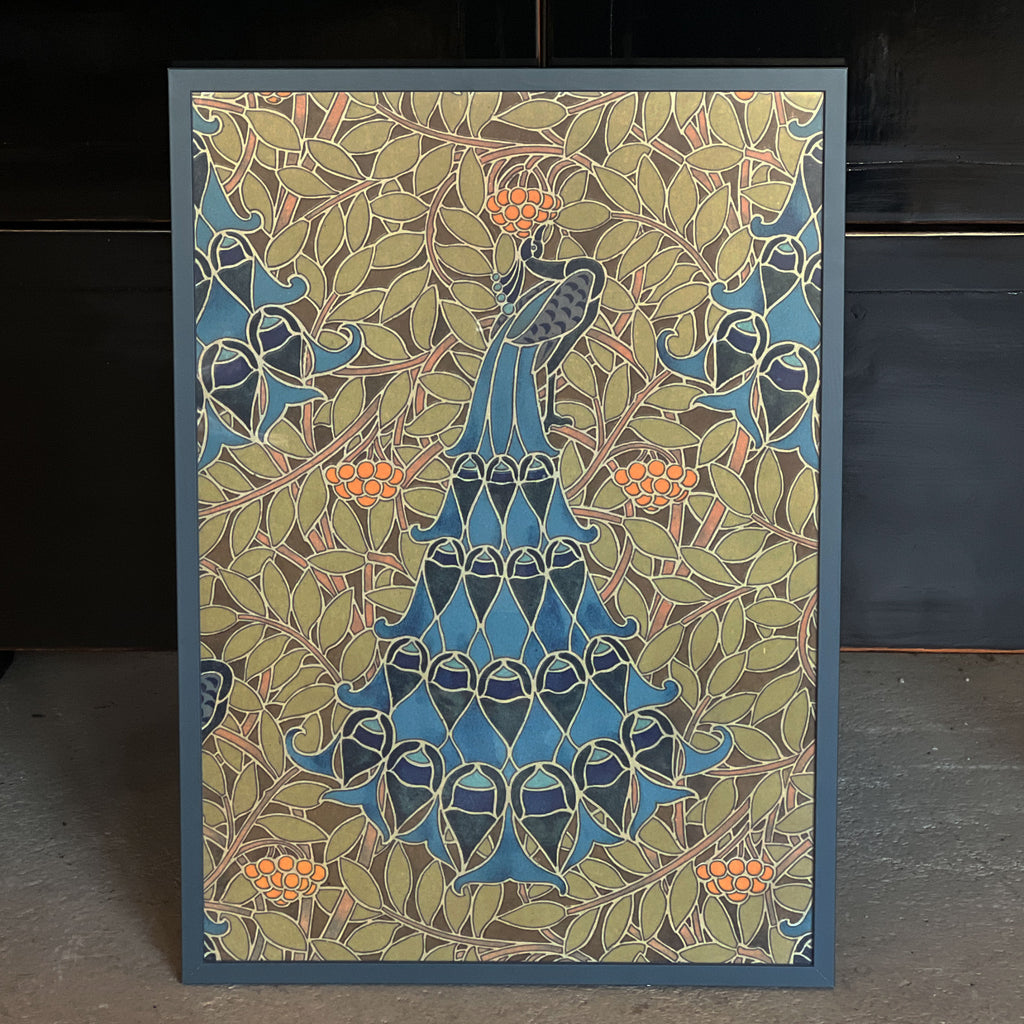 Framed in a Walnut and Gold Wooden frame with glass. The frame is 28mm wide.