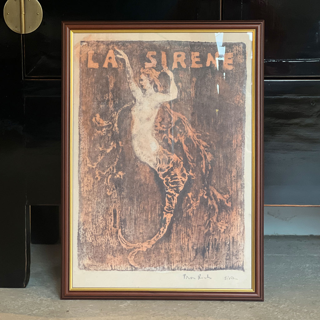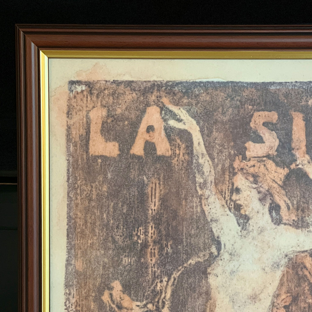 Framed in a Walnut and Gold Wooden frame with glass. The frame is 28mm wide.