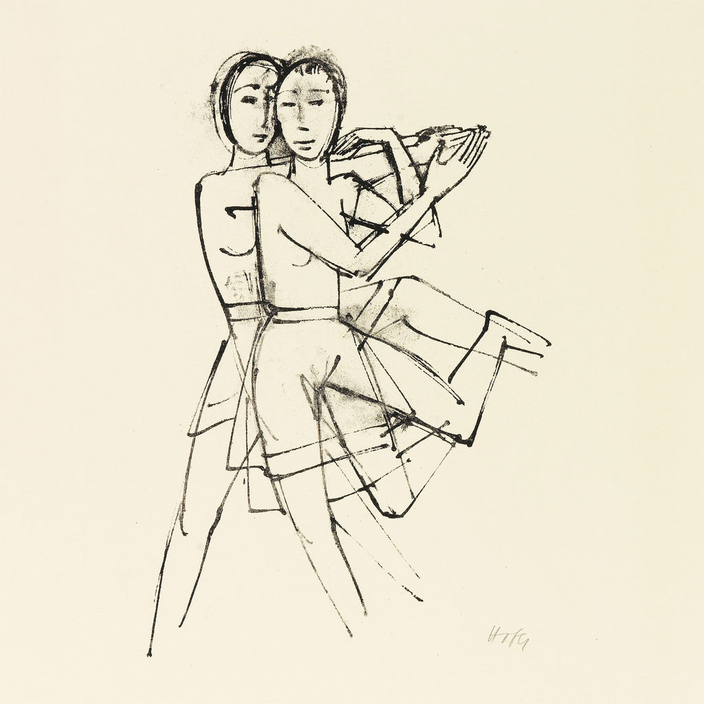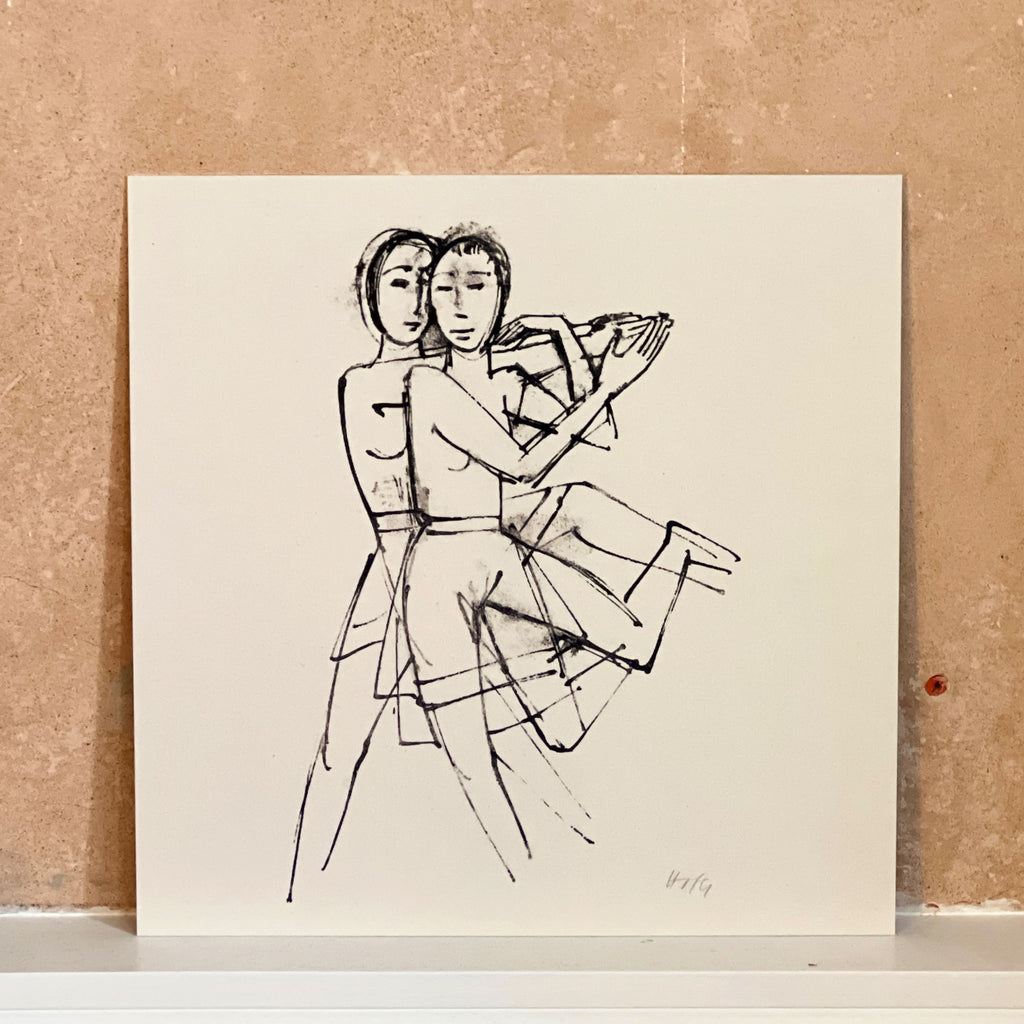 The Dance 1922 by Karl Hofer 1878-1922. Printed on 1mm Satin Aluminium 25cm x 25cm. We love the smaller prints as they can be placed anywhere or if you prefer wall hanging, fixtures are already in place.
