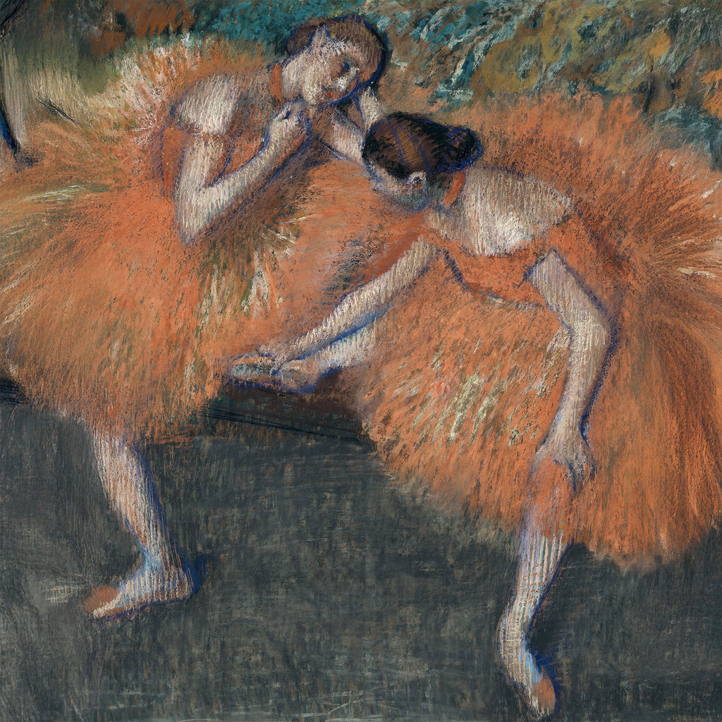 Two Dancers by Edgar Degas 1834 - 1917. Printed on 1mm Satin Aluminium 25cm x 25cm. We love the smaller prints as they can be placed anywhere or if you prefer wall hanging, fixtures are already in place.