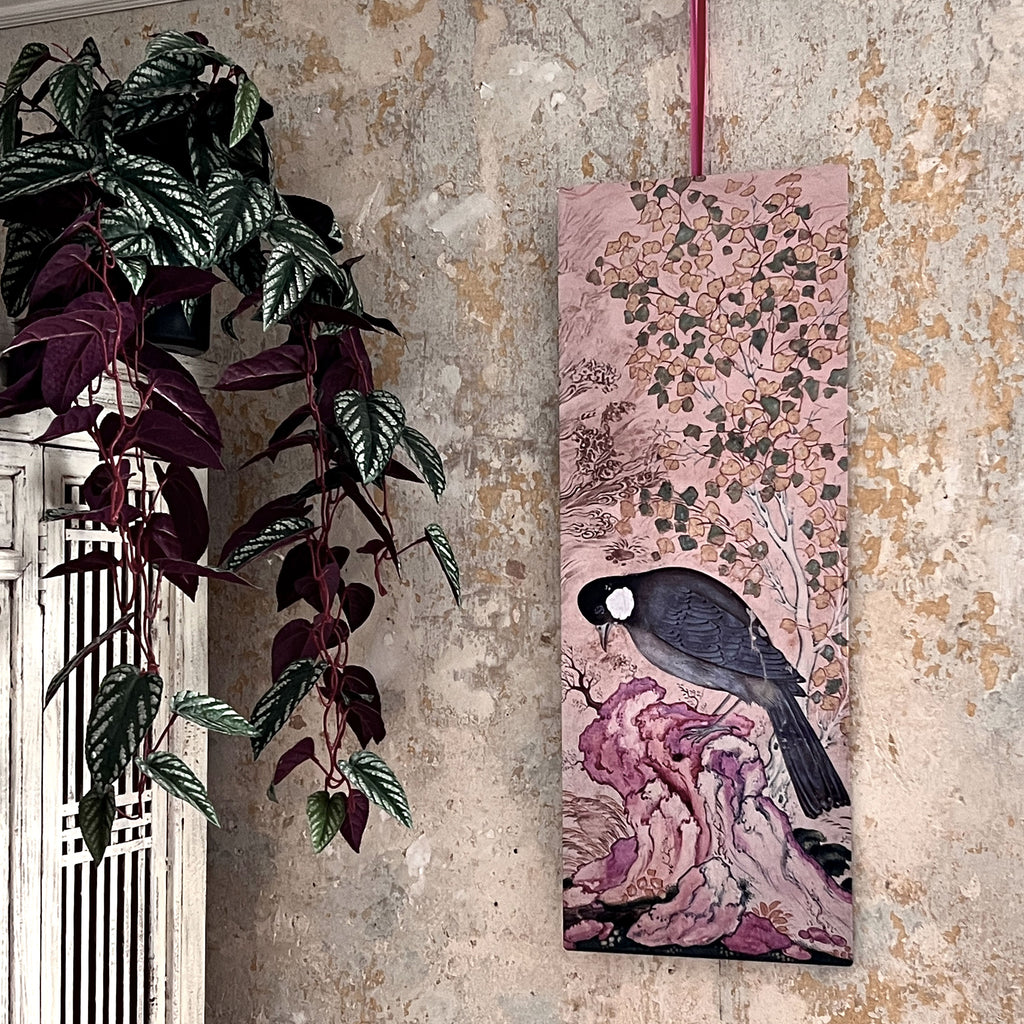 White Eared Bulbul perched on a pit rock was painted in the 1660's by an Iranian Artist Mu'in Musavvir.