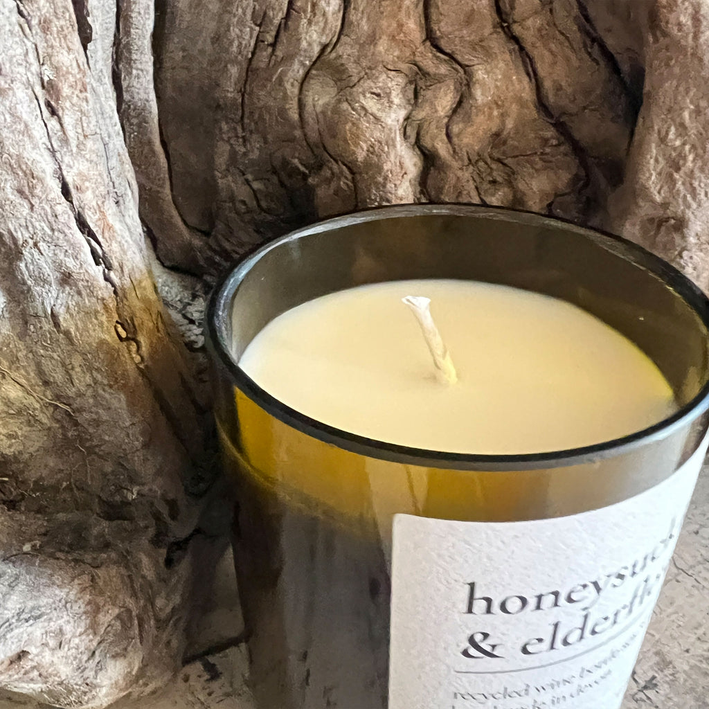 Eco friendly and unique, these beautiful handcrafted candles are up cycled from wine bottles, what a wonderful way to re-use post consumer waste.