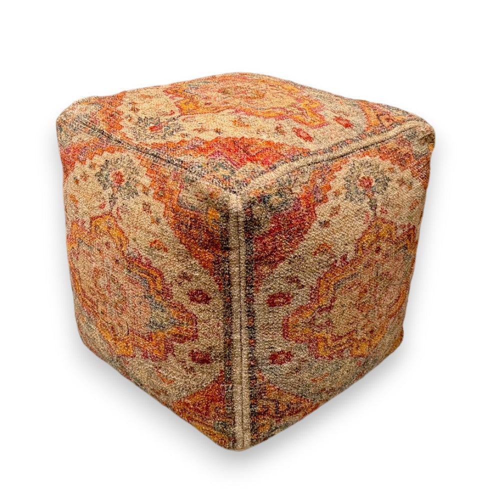 Salmon Printed Cotton Pouffe